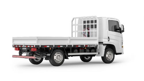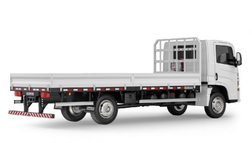 Perfil lateral perfurado para posicionamento de ganchos e catracas conforme necessidade. Coluna fueiro nas laterais e traseira.